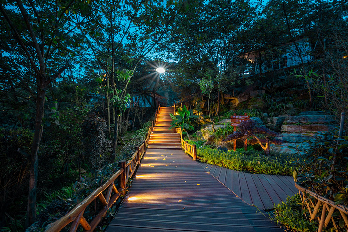 刚匆匆走过天桥仙居觉得环境还不错,午休之后不准备走远,先逛一逛整个民宿,了解一下也不错哒。整个仙居倚山而建,木质栈道被丛林掩映,行走其中很是凉快。