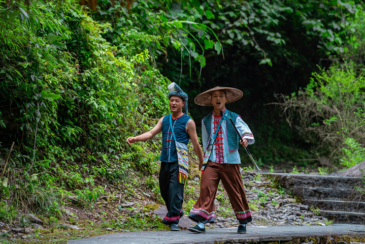 午饭过后徒步下山,去往德夯大峡谷,准确说是玉泉溪峡谷。玉泉溪连接了吉斗苗寨、天问台与德夯苗寨,峡谷内山势险峻,峭壁林立,瀑布悬挂,奇石峥嵘。