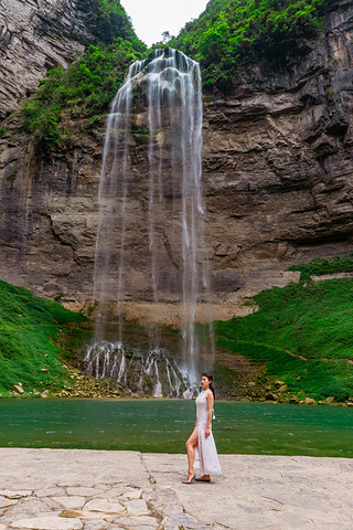 如果不想走下山这一截山路,也可以从吉斗苗寨出来以后坐车到德夯苗寨,然后乘坐电瓶车前往玉泉门方向,下了电瓶车之后徒步半小时左右吧,就可以到达玉泉门,这个水潭碧绿碧绿的,看起来很舒服,再往前就不用去啦。