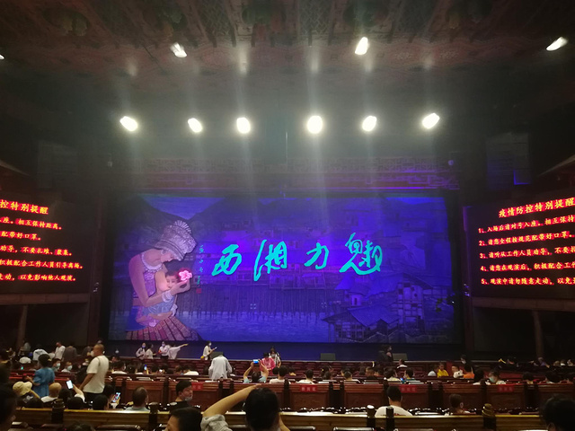 沈从文的边城故事,还有杂记表演(这种表演其实我看着挺吓人的,而且感觉那些演员真的很辛苦),最让我感动就是湘西赶尸,尤其是母亲看到儿子尸体抱头痛哭,最后下葬儿子的场景等等,整体舞台的灯光效果、转场效果很棒