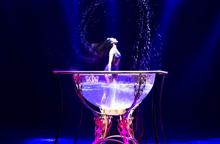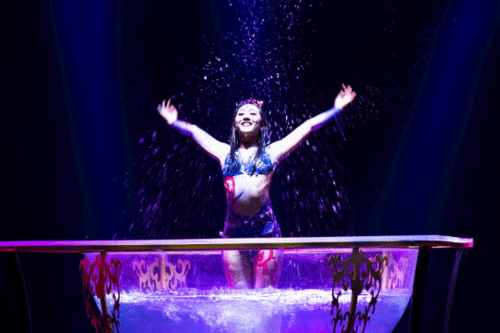 还有一处是一大缸水,摇摇晃晃地从“地平线下”升了起来。有人说是一大杯干红葡萄酒,有人说是一池水幕温泉汤。无论联想到贺兰山下的哪种液体,都是正确答案。最重要的是水中 舞蹈表演片段,美轮美奂,把舞台剧的观赏性推到了极致。