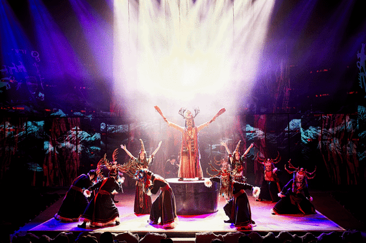 古代,生活在贺兰山上的人们,和生活在其他任何一个地方的老百姓一样,非常重视祭祀活动。舞台剧一开场,就有一个场面宏大的男子群舞,这个群舞,舞出了祭祀场面的地域性,生产生活的主场性。严肃、宏伟、热情洋溢、用心良苦。