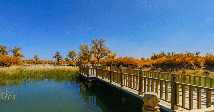 早上七点,我们出发来到大漠胡杨林景区,门票是120元/人,不想走路所以我们是坐的观光车(30元/人),首先映入眼帘的是游客中心真的很大,我们依次浏览了大漠田园、水镜胡杨、弱水河畔、红柳湾。因为弟弟想玩玩沙漠冲浪车,然后去了沙漠驿站。玩完项目后我们就去了陶丽淖尔湖,这里很适合拍照。路上的游客跟我们说可以去如意桥看看,每个景点都是不一样的感觉。到了晚上还可以夜观胡杨林,景色一绝。景区也不用担心住宿问题,有蒙古包、贝壳房还有木屋别墅可以选择。我们选择的是木屋别墅住下的,环境很好,干净整洁。