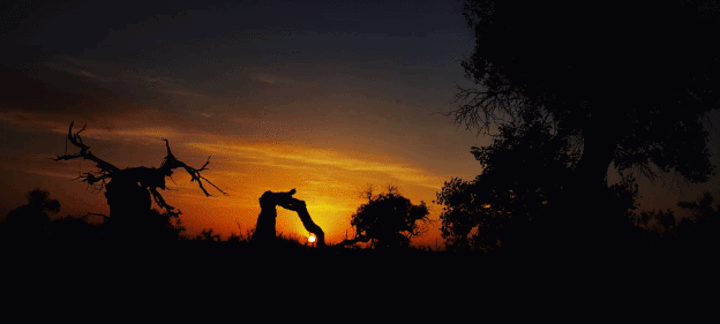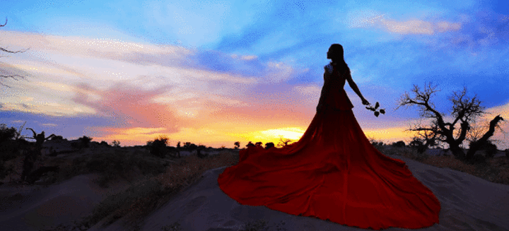 大漠西怪树林,来这里一定要带上件红裙子,感觉自己在拍时尚大片一样,这里的日落景色真的一绝。