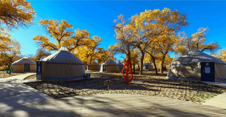 在酒店吃完早餐后,就到了额济额大漠胡杨林景区,景区面积15平方公里,集胡杨林、弱水、怪树、红柳、沙漠、芨芨草于一体。景区内有游客服务中心、房车自驾车营地、大漠行宫蒙古包,还有大漠田园、水境胡杨、弱水河畔、沙漠驿站、红柳湾五大游览区,给我们带来了不同景观体验。沙漠驿站因为朋友不想玩项目,所以我们就没有去。不过喜欢激情与速度的朋友可以去尝试下。