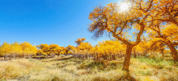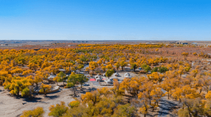 额济纳大漠胡杨林景区还可以体验空中观胡杨,坐在飞机上,一览遍地金黄。