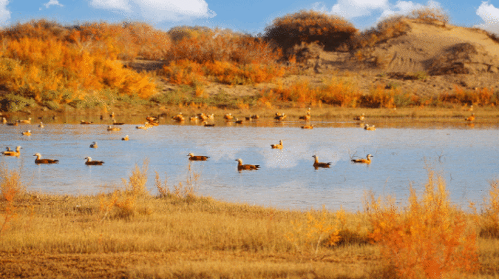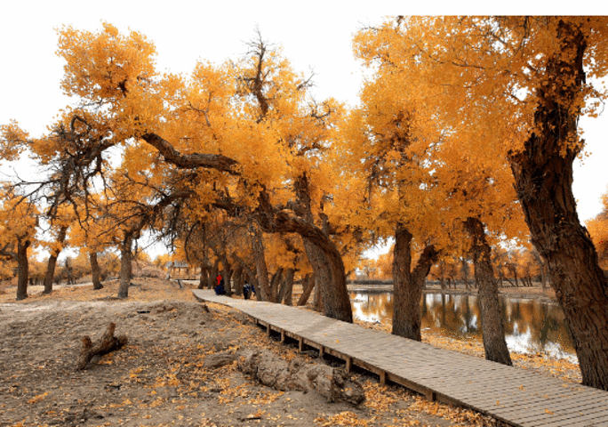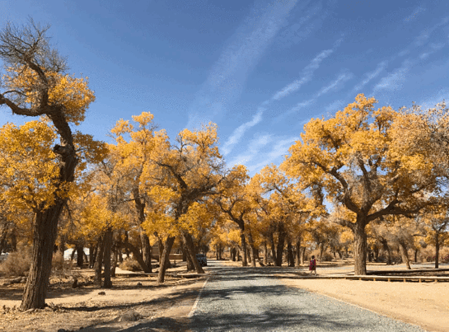 下午一点半,我们到达大漠胡杨林景区,大漠胡杨林景区工作人员介绍,10月10日起,额济纳大漠胡杨林正式进入最佳观赏期,从10日起,到未来的21天都能见到最美的秋色,想要私享一片静谧胡杨林的,现在正是好时候。