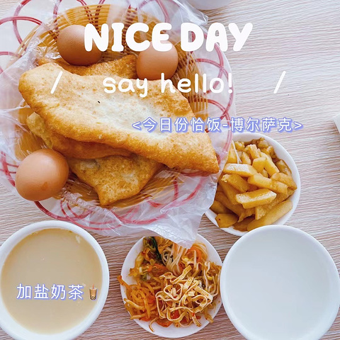 布尔津的特色早饭,这个叫“博尔萨克”的饼味道有点像我们这的油条