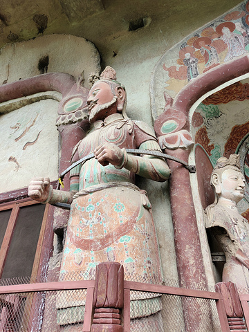 因为木制栈道还是有点高的,恐高症患者还是谨慎选择的好,向下观看会有些刺激吓人,但还是非常安全的。麦积山石窟内还有很多精彩石窟作为特窟,不对常规游客开放。比如这个123窟