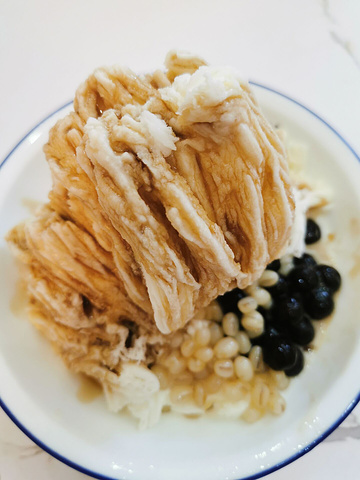 鞠婆婆绵绵冰在嘉祥路南头对着开了两家。简单的几张桌子,挤满了食冰的小姐姐,由然升起一种穿越民国小资氛围。杨枝甘露和芒果的很可口。
