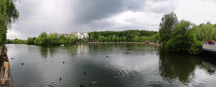 倒是有一些野鸭在湖里戏水,天空中飘来一片黑云,要下大雨了。