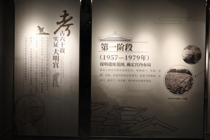 序厅展示了大明宫的考古历程,一共有三个阶段,泱泱大唐的宫殿遗址能够完整的保存到现在并呈现在世人眼前真的是一件不易且幸运的事情,这经过了大明宫三代考古人的不屑努力。