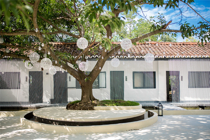 小院中间有棵古树,蜿蜒伸展,活得恣意洒脱。徐莉很喜欢它,并在装修时刻意保留了下来,并挂上白色的羽毛灯作为点缀,与周围环境交相呼应。白天,它用茂盛的枝干和树叶,为小院带来绿意和凉爽,夜晚,它像伟岸的男子,守护着小院的旖旎情调。