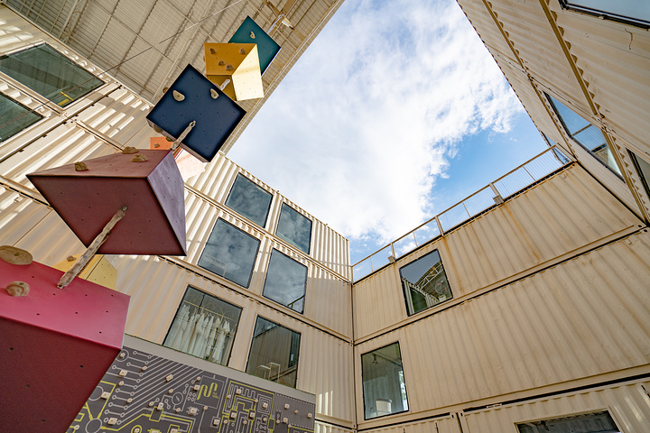 这里的攀岩设施,根据身高和年龄,划分出了成年人和小孩子的区域,上图的“电路板”攀岩墙面就是专为小朋友打造的。