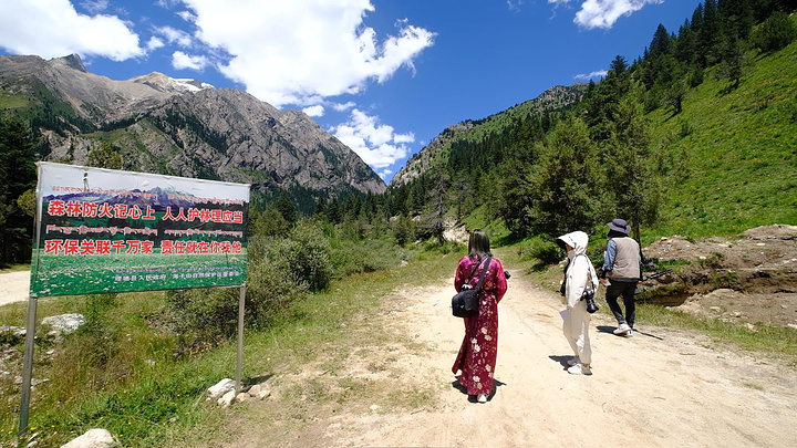 为了有更多时间享受沿途的风景,我们选择了徒步。左边是去往新冷古寺的路。