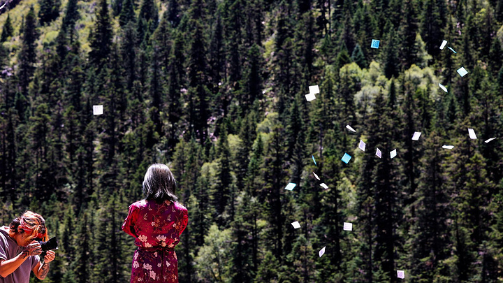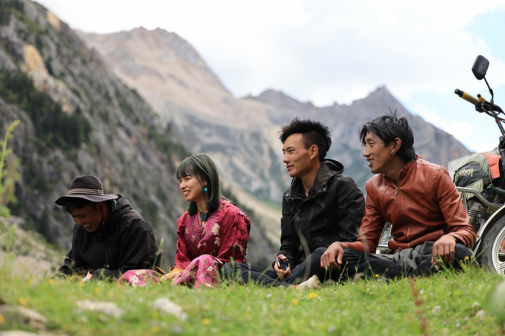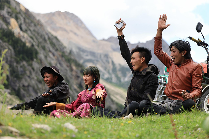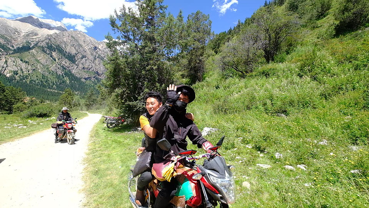 徒步起点会遇到很多本地的康巴汉子,他们会骑着摩托车问游客们是否要选择摩托车上山。一路上,他们一边放着音响,一边唱着歌,自由而热情。