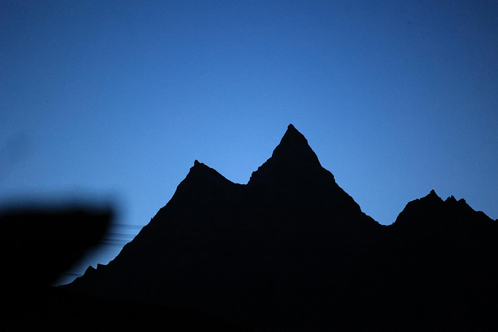 高原上的日夜温差较大,太阳完全落下山去,温度也快速下降。站在村子里,就能望见格聂神山的其中一座山峰。
