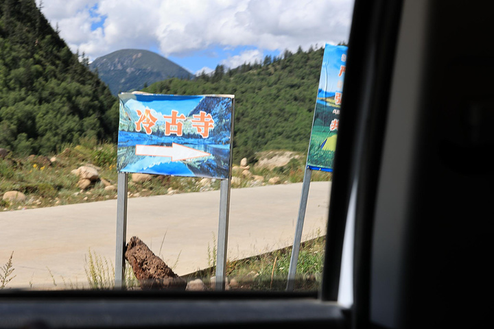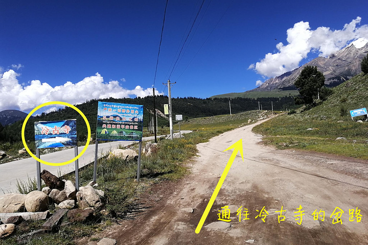 继续沿着河道公路前行,会看到一个写有冷古寺的小路牌,路牌不大,很容易被忽略。