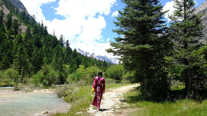 徒步老冷古寺并不容易,从海拔3800米到4000米,开始便是斜坡上行,两步一大喘,五步易高反,单程徒步2小时左右,但途中沿着神山山脚前行,越往前,风景也大有不同。