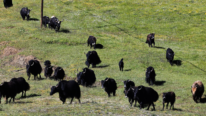 途中遇到牛老大正在召唤自己的“小弟们”,牛王一声吼,牛群奔涌而来。