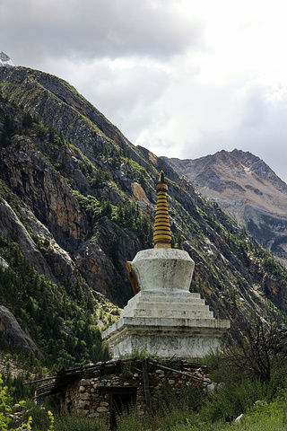 攀上最后一段山坡,来到冷古寺的门前,寺外的白塔已经有了岁月斑驳的痕迹。