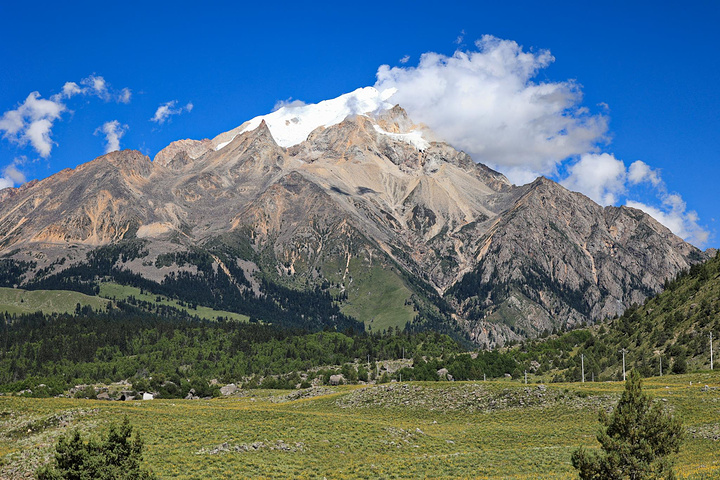 格聂神山的藏语名为呷玛日巴,是我国藏传佛教24座神山中的第13座女神。格聂神山并非一座雪山,而是群峰林立,其中最受尊崇的是三座神山,格聂主峰海拔6204米,肖扎神山海拔5807米,克麦隆神山海拔5780米,而她们就在我们行车的沿途。