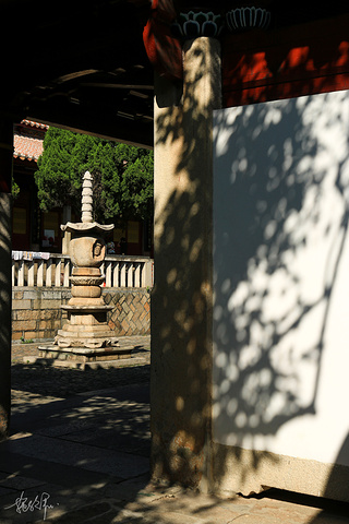 在开元寺甚至还能见到月台须弥座的狮身人面像,大雄宝殿后的16角型的印度教石柱……这本是元代的印度教寺内的石雕,但由于战乱和被摧毁,最后印度教在泉州销声匿迹,后来被摧毁的这些石构件被搬来开元寺建造了。