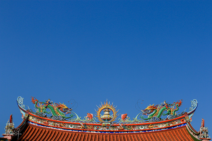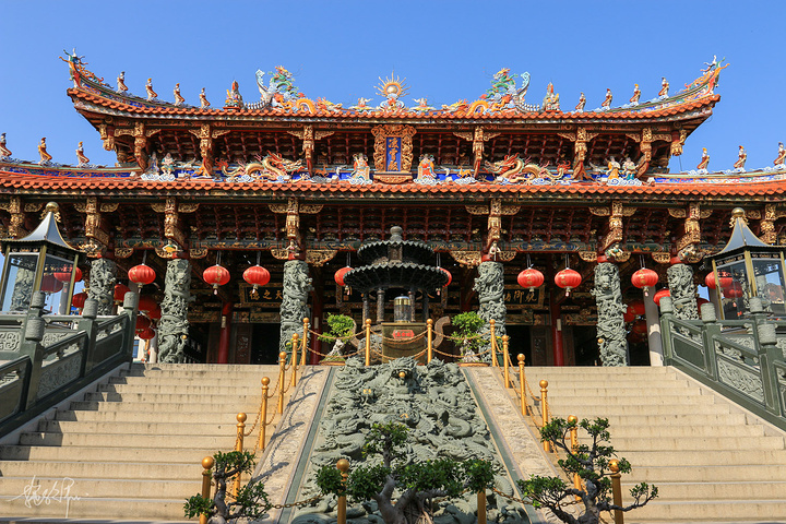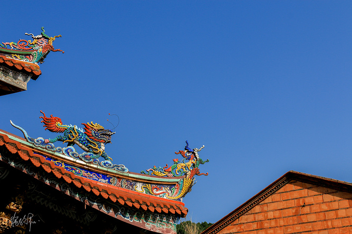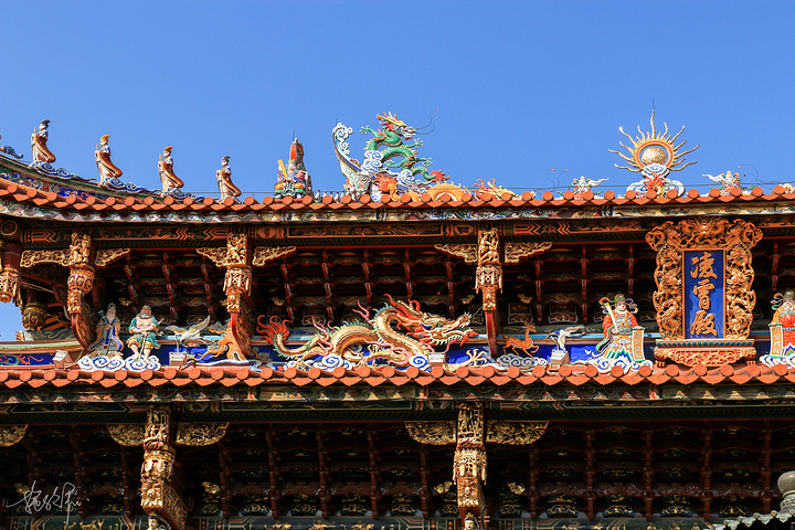 剪瓷雕是我们闽南特有的一种需要现场施工的镶嵌艺术,在闽南和台湾的庙宇都会看到,但由于在屋顶可能经常被忽略。剪瓷雕用的就碎瓷片所雕贴出来的人物、动物或者花草树木,因为是瓷器剪了以后,贴上去的,颜色非常艳丽,立体感十足,层次也分明,无论是龙还是凤都美得无法言喻。