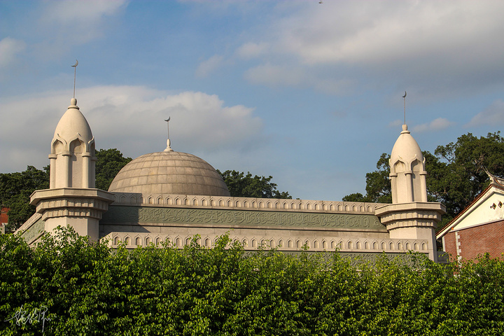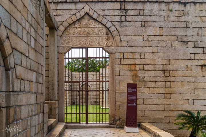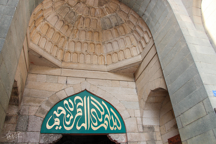清净寺仿照的是阿拉伯建筑形式,特别是门楼部分的半穹窿顶,整体看起来就很有异域风情。进入门楼后有一些阿拉伯文字的石刻,也是从这个石刻我们知道了清净寺建立的时间。