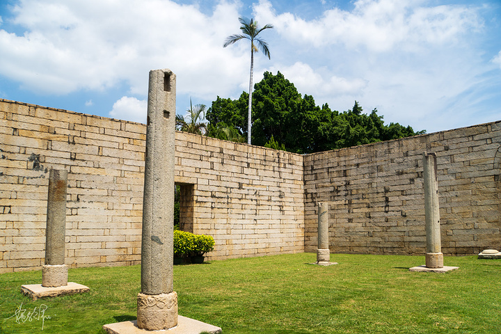 从门楼进去以后,西侧的这个建筑是奉天坛,南墙有八个大窗。我在想说不定奉天坛从前也是像门楼那样的屋顶,比较可惜的是经历过大地震以后,我们看不到原来的模样,但更难能可贵的是现在残存的柱础和残柱,都是来自千年以前的模样。