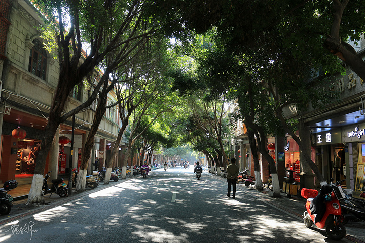 中山路的两旁都是柱廊式的骑楼建筑,这是闽南文化与东南亚文化的结合体,长达两千多米的街道上,满满的感受得到泉州是华侨之乡。逛中山路时,无论是大太阳或是下雨天都不需要打伞,走在街边便可以遮阳避雨了。