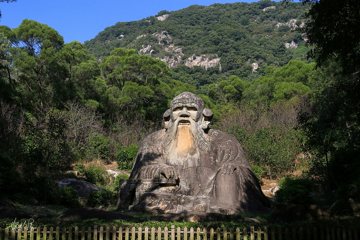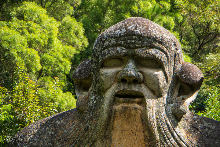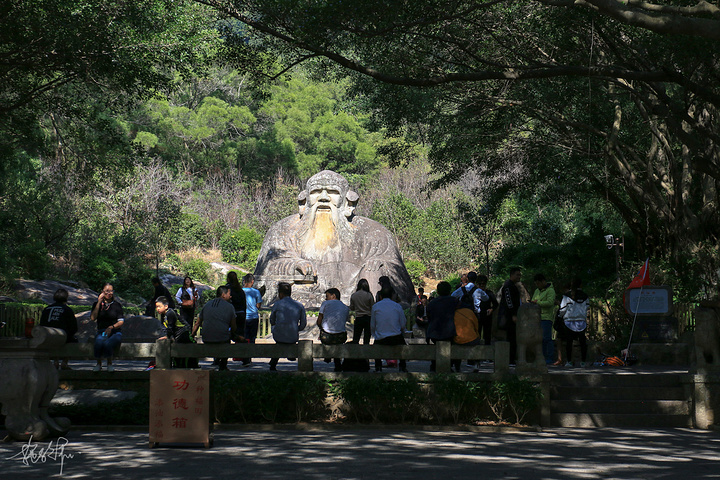 老君岩就在入了清源山山门不远,走上两步林荫小路就能看到老君岩了。高大的榕树、龙眼树遮天蔽日,可偏偏到了老君岩这像是开了天。