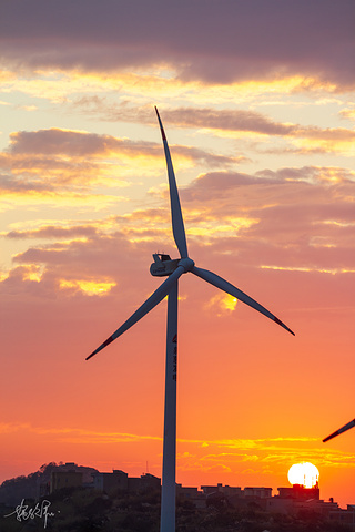 顺着环山路一直往上,夏末的傍晚,太阳隐了一个小角在云层里,海风拂面,但只在你眼前耳后萦绕,半点也不在风车上,风车的扇叶急急缓缓的回落,你看她摇摆不停,她看你却像是静止一般。