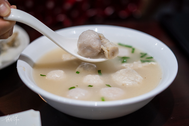 > 水丸汤,深沪鱼丸、拳头母都是泉州很出名的传统小吃,汤头用的都是大骨熬制而成。