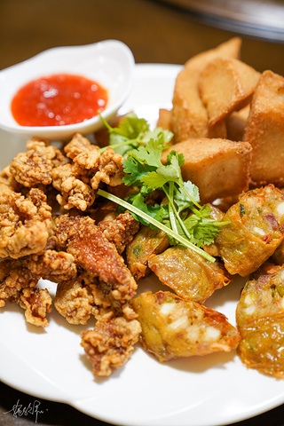 > 这是一道三者合一的小吃,醋肉、五香卷与菜粿,炸物简直是人间天堂!醋肉是猪肉用醋、酱油老抽、蒜等下去腌制,裹上地瓜粉油炸,外酥里嫩。五香卷也称鸡卷,是豆皮包裹着五花肉、马蹄等下去油炸,在蘸上泉州特有的甜辣酱,啊,欲罢不能。最后介绍的是安海菜粿,白萝卜捣碎成泥再混合米浆,蒸熟成菜粿,这个真的必须要吃安海人做的才最好吃。