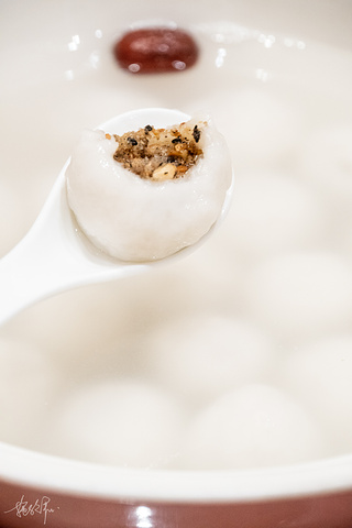 > 泉州元宵圆,其实就是汤圆,但是我们做法可能略有差别,馅是由花生碎、糖、黑芝麻、葱头油制成了馅粒,再用糯米粉一圈圈一层层摇出来的。