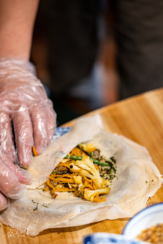> 润饼菜,是我们清明时节才会吃的一道传统小吃,现在因为来泉州的人越来越多了,很多本地人也会将这道菜拿出来作为特色小吃售卖。最主要的是那张润饼皮,包上红萝卜、豆角、花菜、海蛎、鱿鱼、五花肉,搭配浒苔、麻粩和花生碎,绝了。