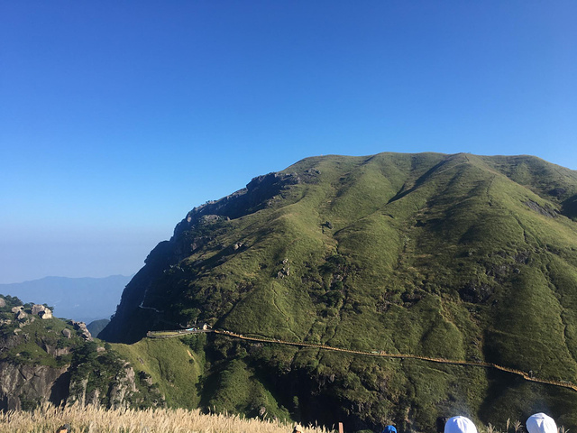 看完日出,大家纷纷收拾行装离开金顶,往上下走,我们收拾好东西吃完早餐踏着阳光出发。经过昨天的徒步,今天下山有点困难,腿很酸,全程都是上山下山,还有个好汉坡,非常大的坡度,这个时候真的希望有个棍能拄着,不过当走完了那些大坡,你就会发现自己真的很厉害,一路上的风景很美,十万亩草甸,有绿的有微黄的,还有很深的山坳,还有一千米的星空玻璃栈道,在山壁上蜿蜒的盘旋着,等待着勇敢的人去挑战。