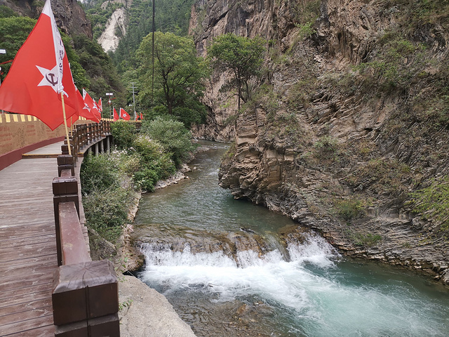 吃完步行参观,依次有红军栈道起点、碉堡遗址,旁边小河的水好清澈,然后驾车前往腊子口战役纪念馆4KM就到了,记得一点要穿的庄重点。