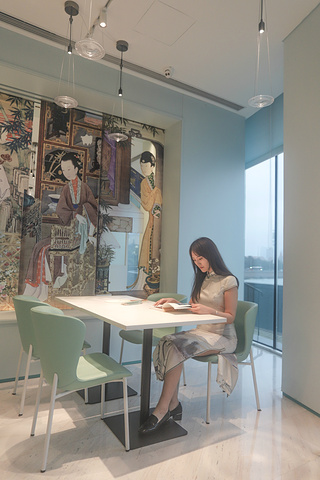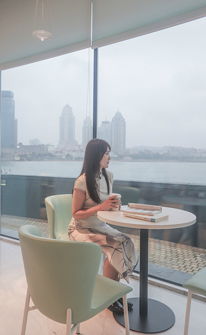 值得一提的是,在一楼的文创厅旁边还有一个网红咖啡厅,点上一杯咖啡,坐在玻璃窗旁隔床远眺,不远的栈桥风光尽收眼底,好不惬意。