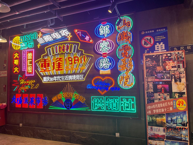 洪崖洞一个1-11层,1层是地面,11层也是地面,而且是可以去上面这个千厮门大桥的,晚上在桥上拍洪崖洞很美。洪崖洞其他楼层我觉得一般般,就5层有个重逢1980,挺有意思的。