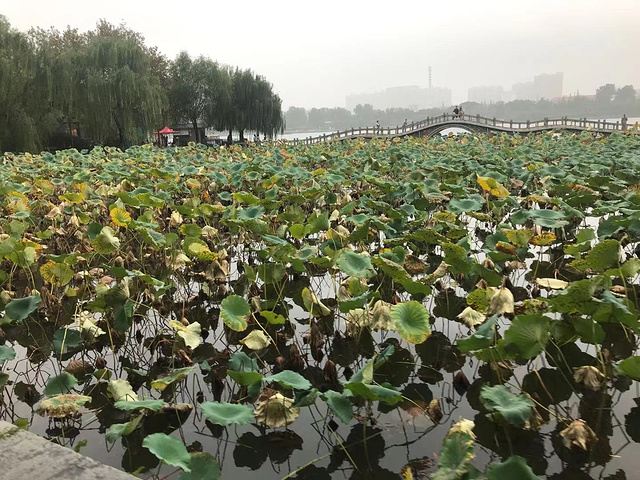 下车之后拍了一张荷花的照片,要是夏天来着一池的荷花一定很美