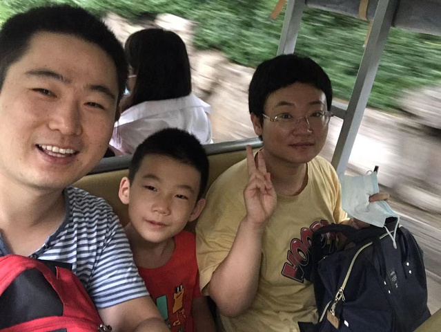 到了大明湖西南门的位置一进门正好有观光车,儿子非要座,那就坐着观光一圈吧,本打算下车后再步行游览一下,结果在路上看湖里有很多画舫在走,就打电话问黑虎泉船站是不是开了,然后真的还是开了,我们就下了缆车,打了辆车飞奔到黑虎泉(这次来儿子的主要目的就是坐画舫)