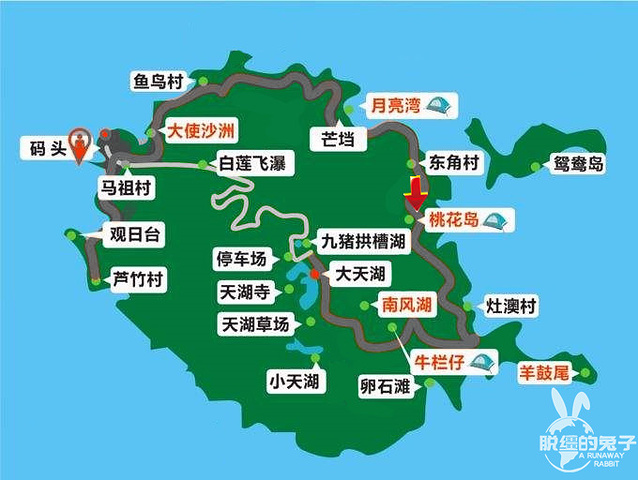 桃花岛,也不是村,所以也没人。只有个露营之地,有特别的民宿,可以搭帐篷。
