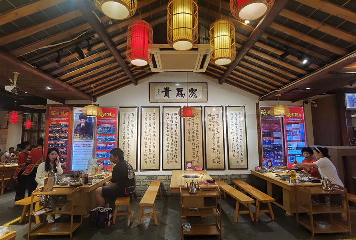 一到店门,苗妹子载歌载舞欢迎客人的到来,很有仪