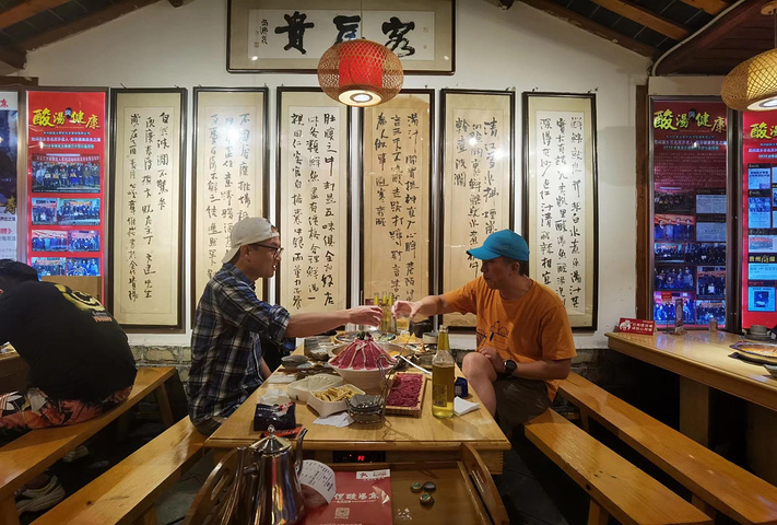 贵阳有无数家酸汤鱼店,去哪家吃?省府路上的这家“老凯俚酸汤鱼”的店,因为店前有一条有点年代的石板路,被贵阳人亲切地称为“石板路上的那家老凯俚酸汤鱼”,口碑不错,就去这家了。