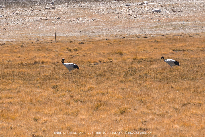 路遇沼泽地中的黑颈鹤。