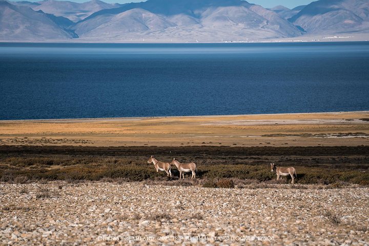 途中路遇藏野驴,跟湖水、草地在一起,颜色煞是好看。