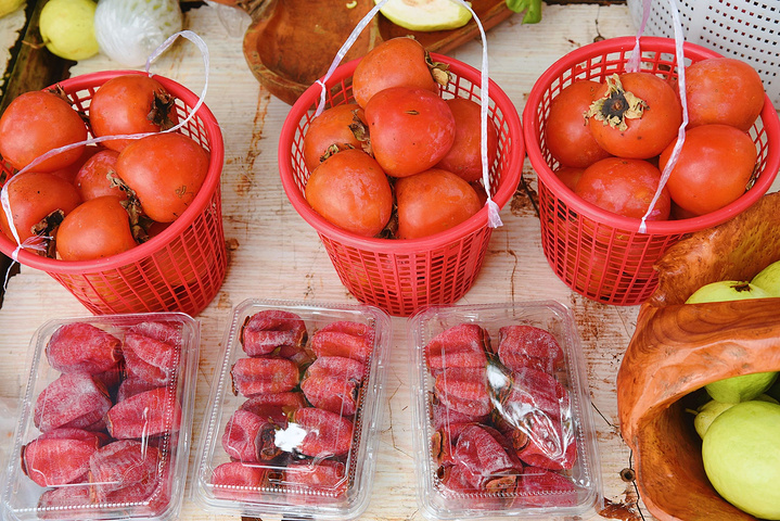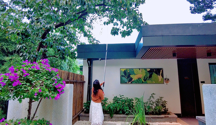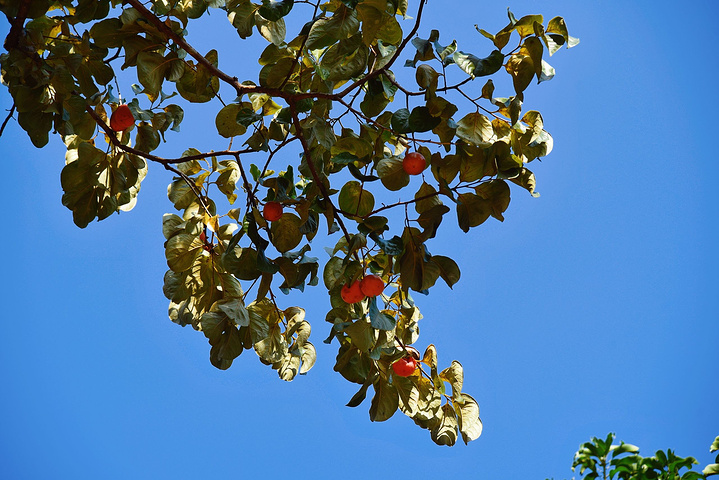 度假区不仅环境优美,更有许多体验项目可供住客选择:前台可以借到采摘柿子的工具——“舀子”,一根四五米长的不锈钢棍,末端有一个铁圈,举起舀子让铁钩钩住紧连着果蒂的树枝,向后一拉,柿子就咂到我的头,哈哈!