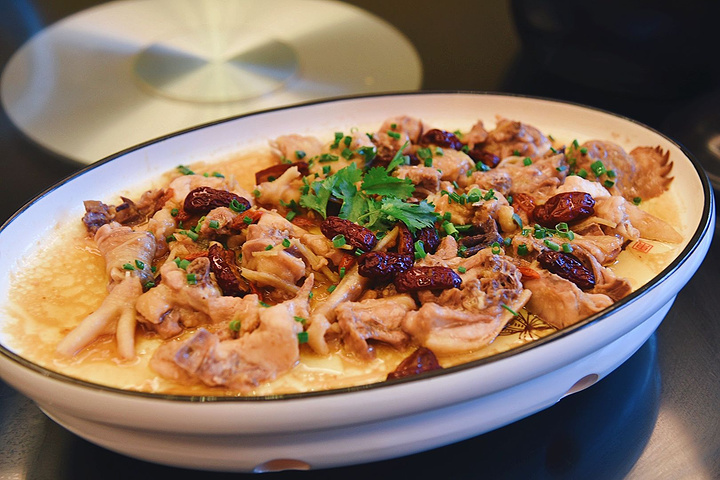 玩累了来到度假村餐厅,菜地里新鲜采摘回来的蔬菜真心好吃;红枣蒸鸡,鸡肉很鲜嫩还有点儿甜;肉丸子更是因为加了紫薯、香芋而不腻;小河虾鲜美好吃;鲫鱼汤鲜掉眉毛……
